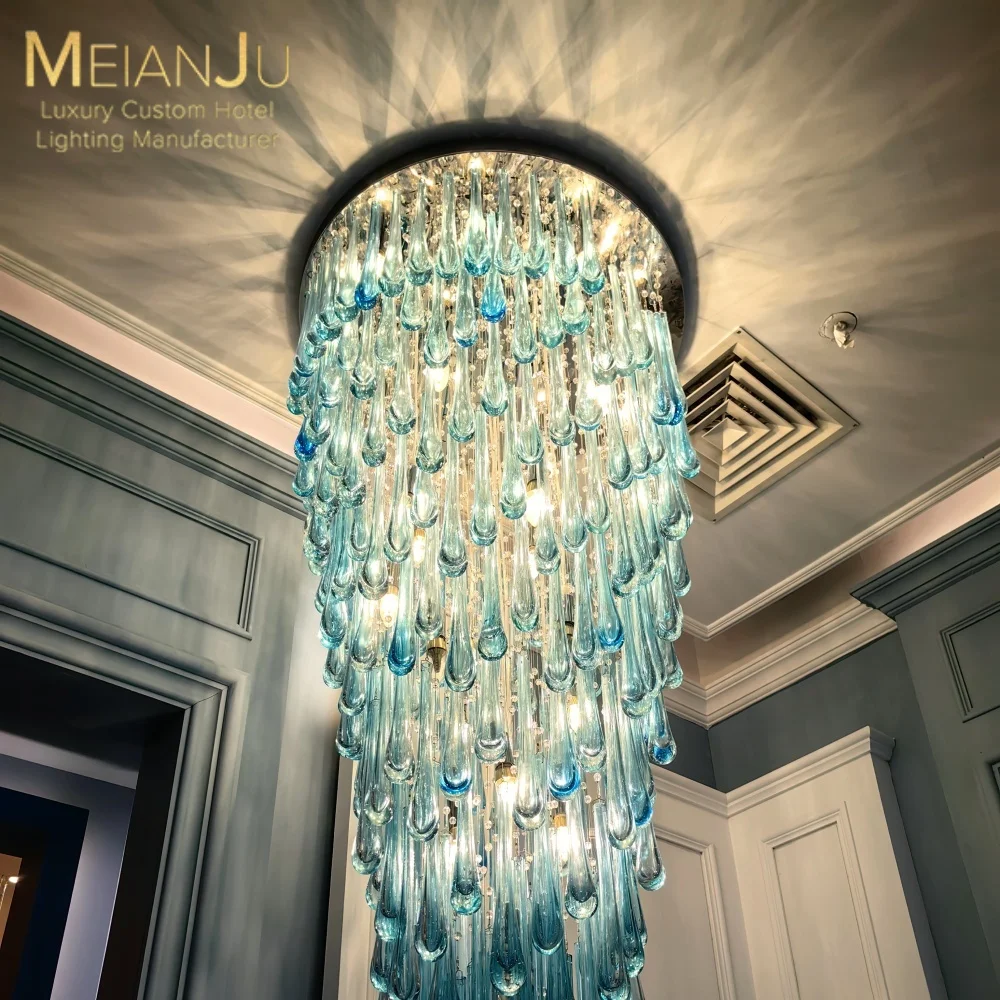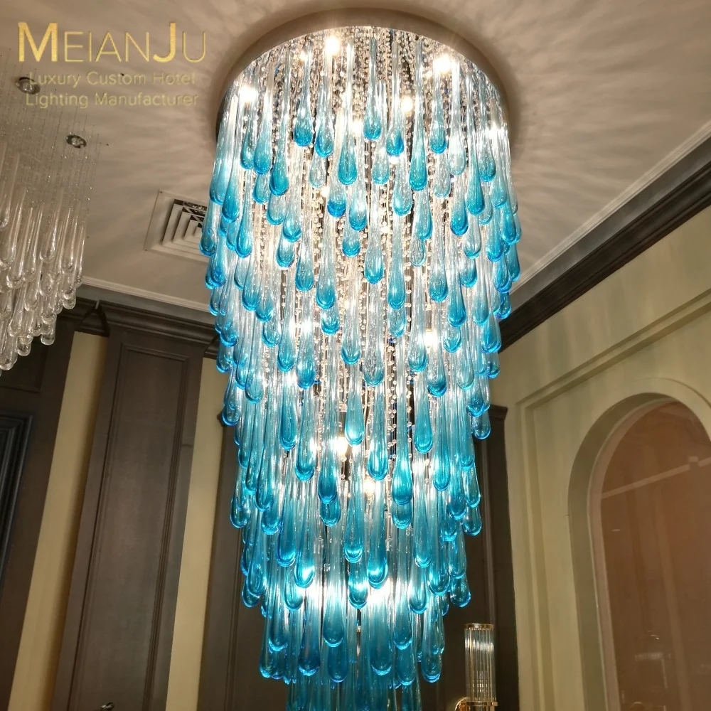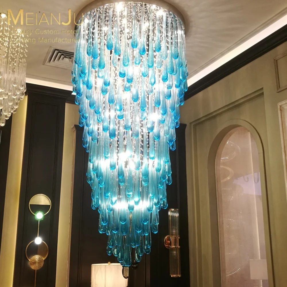 Zhongshan Premium Hanging Pendant Light Modern Blue Teardrop Cone Chandelier for Hotel Ballroom & Conference Room Lighting
